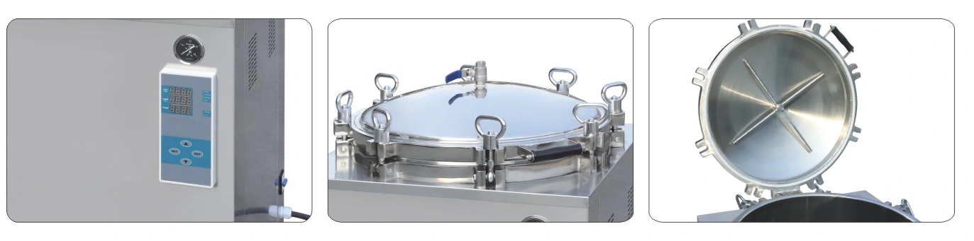 Қарсы қысымды автоклав орташа өлшемді микрокомпьютермен басқарылатын зарарсыздандыру жабдығының бір түрі болып табылады, ол стерильдеу циклі талап етілетіндей жоғары қысымды буды өндіру үшін суды тікелей электр жылытуға арналған зарарсыздандыру камерасына толтырады, содан кейін қондырғы бұйымдарға зарарсыздандыруды жалғастырады, су температурасы сыртқы қосылған сығылған ауаның температурасын 3 минут ішінде тез салқындатады, камераның температурасын төмендетеді. 30~40℃. Құрылғы бағдарламамен басқарылады, таңдаудың екі жұмыс нұсқасы бар: стерильдеу температурасы 100℃ төмен немесе тең қайнау дезинфекциясы. Құрылғы стерилизациядан кейін шамадан тыс жүктемеден қорғау және дыбыстық сигнал беру функциясы бар, жұмыс істеу оңай және ыңғайлы, қауіпсіз және сенімді. Ол тағамдық өнімдерді дезинфекциялау мен зарарсыздандыруға қолданылады. тағамдық зерттеу мекемелерінде стерильділік сынағы үшін әсіресе қолайлы.